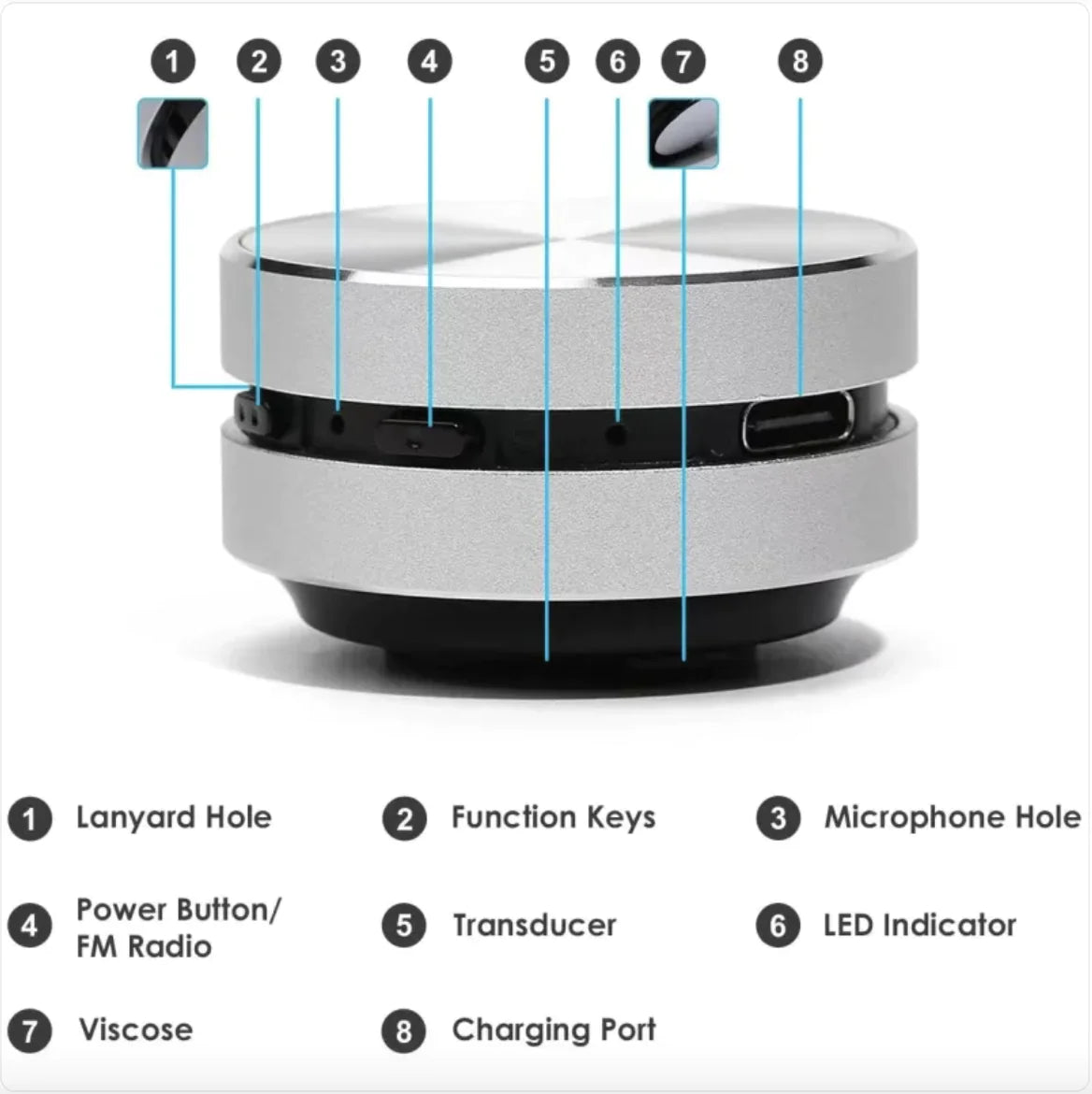This portable bone conduction Bluetooth speaker features a compact, lightweight design with dual bone conduction transducers for clear, wireless sound. It supports Bluetooth 5.0, TWS stereo pairing, FM radio, and multiple audio formats like MP3 and WAV. The built-in rechargeable battery offers up to 240 hours of standby time with a Type-C charging interface.
